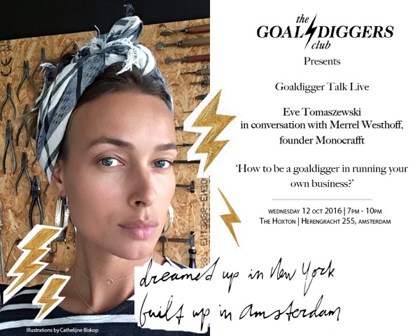 Na het succes van 'Goaldigger Talk' online, komt The Goaldiggers Club nu met 'Goaldigger Talk Live'. Tijdens deze avond zal Eve Tomaszewski, bekend als editor van o.a. Grazia, Cosmopolitan, L'Officiel en Elle met vier inspirerende vrouwen uit de creative sector een paneldiscussie voeren over het onderwerp 'How to be a goaldigger in running your own business?'. Leer tijdens deze avond van de ervaringen van vrouwen die het al gemaakt hebben in de business en hoor de echte verhalen over wat er komt kijken bij het runnen van je eigen business.